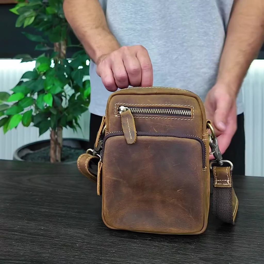 Meet Riven — a sleek leather crossbody bag designed for men who value practicality and style in a compact form. Handcrafted from full-grain Crazy Horse leather, Riven combines rugged durability with timeless design, making it your perfect companion for commutes, travel, and casual outings.